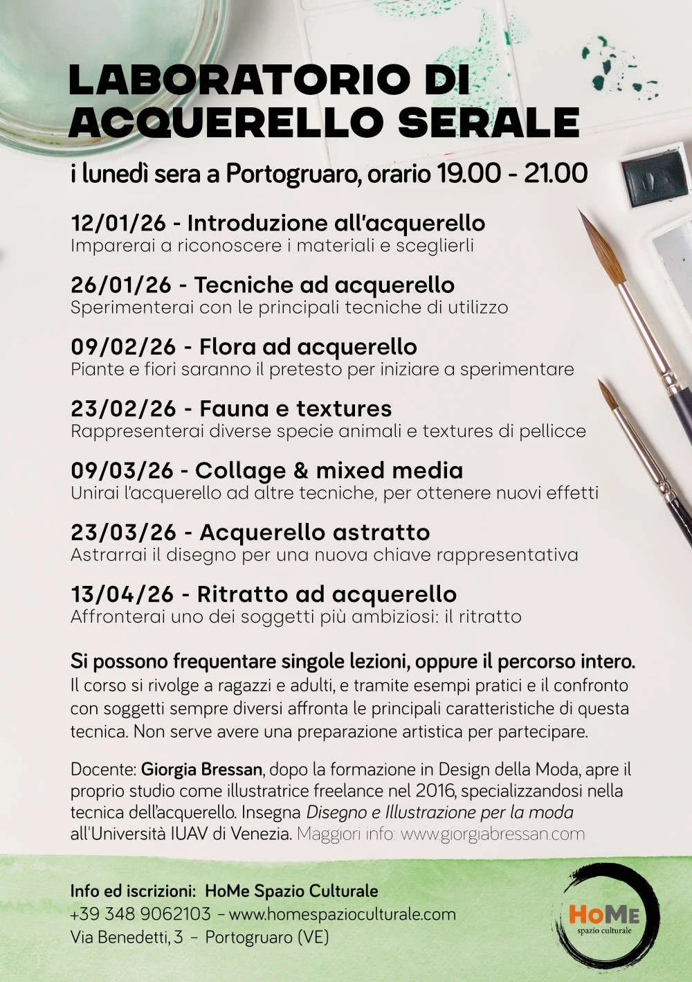 12/01 Introduzione all’acquerello Per fornire a tutti i partecipanti una base anche teorica rispetto a questa tecnica e capire quali sono i materiali che la influenzano e perchè è importante conoscerli.